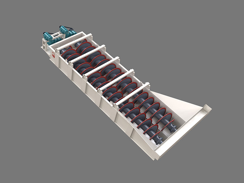 LX砂石洗選機系中螺旋洗砂機利用物料不同粒度和密度的顆粒在流體中具有不同的沉降速度的特性——粒度細(xì)、密度小的顆粒沉降速度慢;而粒度大、密度大的顆粒沉降速度快,將粉塵和雜質(zhì)與砂分離開來。并在螺旋片的均勻攪動下,達(dá)到濾水去雜、提升輸送的目的。